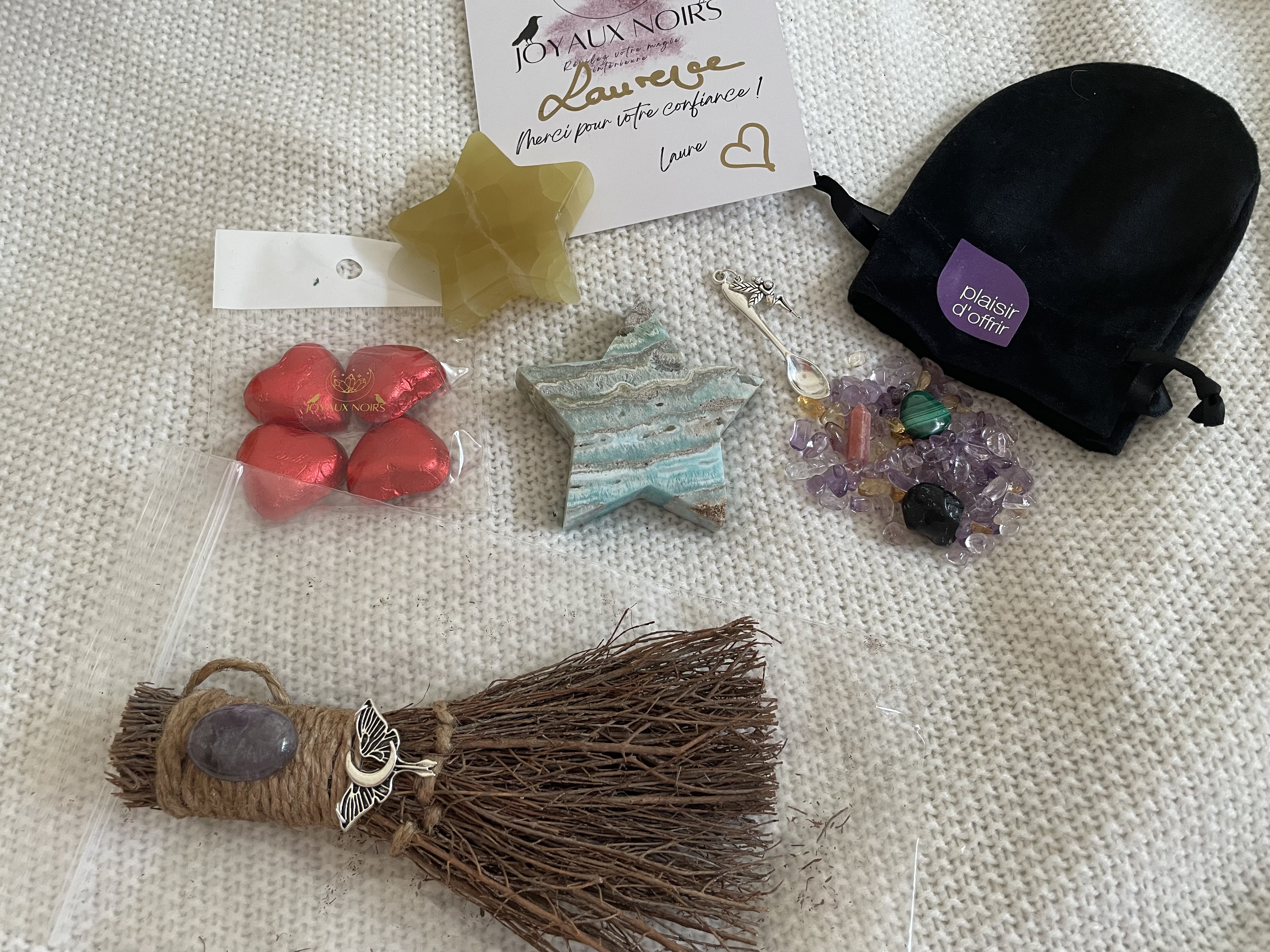 Posté le 12/02/2024 à 07:06"C'est toujours avec autant d'émerveillement que l'on découvre nos trésors de chez JOYAUX NOIRS, de Belles énergies, une qualité incroyable sélectionnés minutieusement avec passion par Laure. Merci beaucoup pour toutes ses beautés 🙏💎🥰❤️🔥🦋💝🫶"